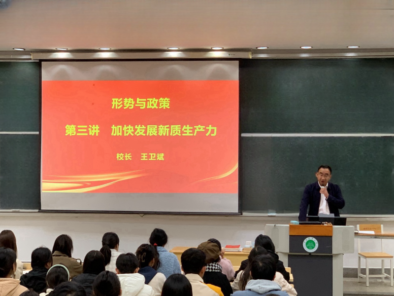 11月7日下午,校党委副书记、校长王卫斌为机械电子工程、植物保护、应用化学2023级专升本学生200多人讲授思政课。
