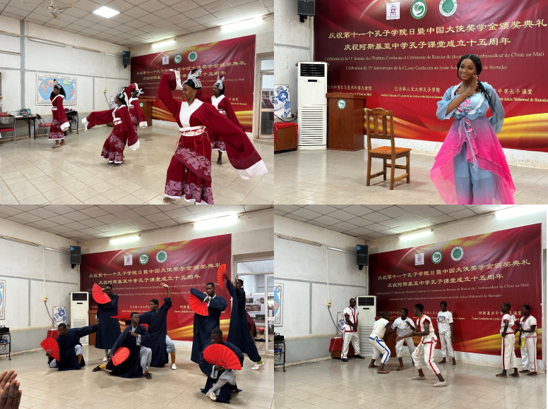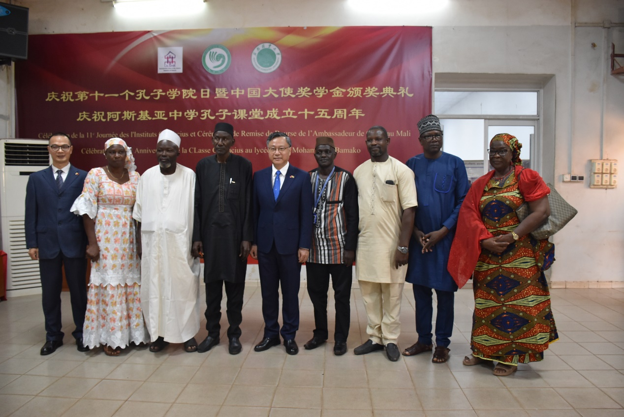 9月27日,学校马里巴马科人文大学孔子学院、阿斯基亚中学孔子课堂联合举办第十一个孔子学院日暨孔子课堂成立十五周年庆祝活动。中国驻马里大使陈志宏、马高等教育与科研部代表、国民教育部代表、巴马科人文大学和阿斯基亚中学师生以及中资机构和侨界代表等近百人出席活动。