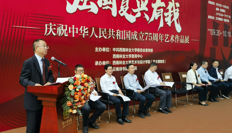 9月30日,kaiyun体育网页登录入口庆祝中华人民共和国成立75周年艺术作品展开幕式在艺术博物馆举行,校党委副书记魏宏在开幕式上致辞,副校长何霞红宣布主题展览活动开幕。校党委宣传部部长张武先代表主办单位宣读了“庆祝中华人民共和国成立75周年主题征文和艺术作品展览活动获奖作品名单”。
