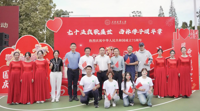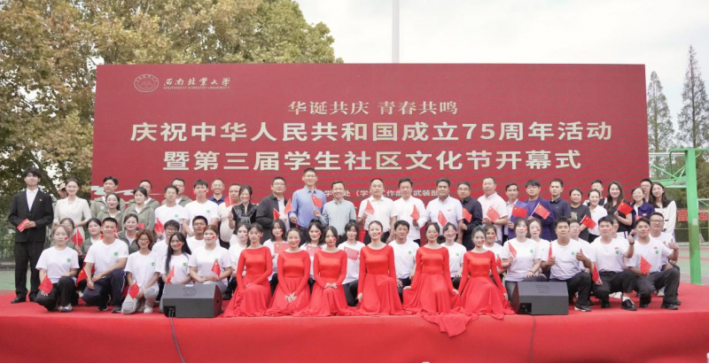为庆祝中华人民共和国成立75周年,加强师生爱国主义教育,扎实推进学校“一站式”学生社区综合管理模式建设工作,9月27日,学校在北区篮球场举办“华诞共庆·青春共鸣”——庆祝中华人民共和国成立75周年活动暨第三届学生社区文化节开幕式。副校长郭华,学生处主要负责人、社区党工委委员、各学院党委副书记、学工办负责人、学生代表共400余人参加活动。