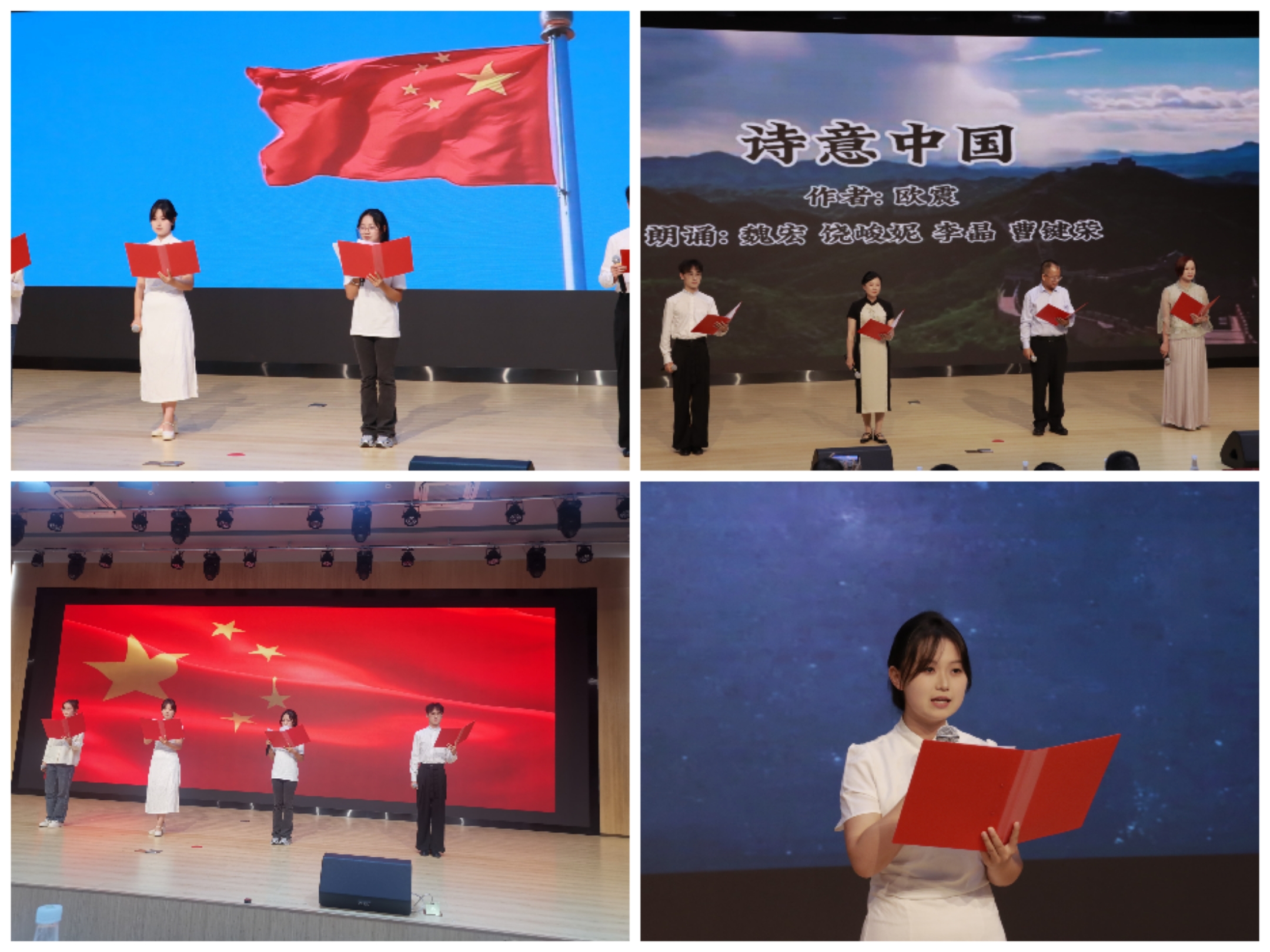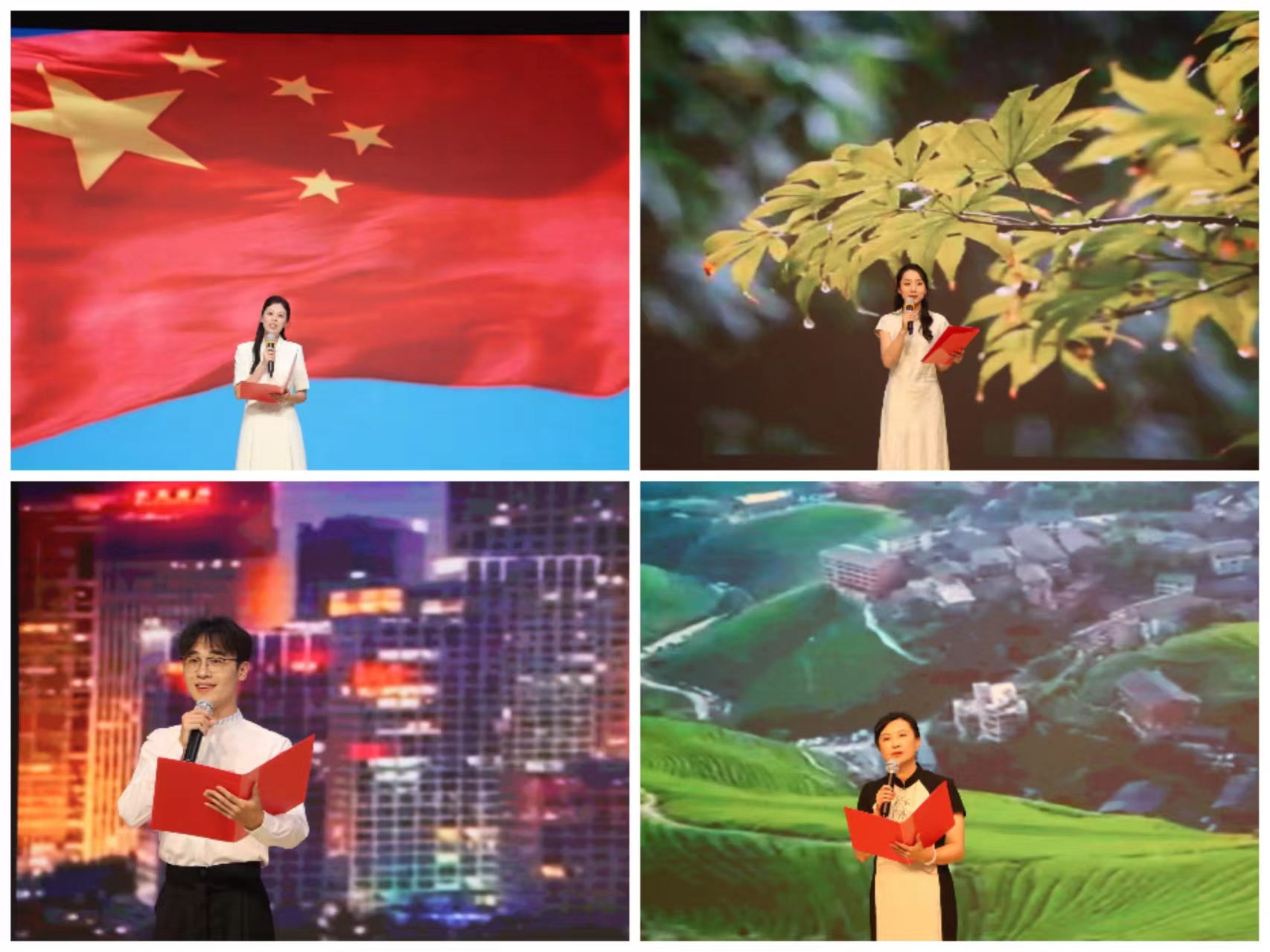晚会首先为获奖作品举行了庄重的颁奖仪式,随后进行了获奖作品展演环节,来自师生和外国留学生的优秀作品逐一亮相。其中,一些作品通过饱含深情的朗诵,生动地展现了革命先辈的英勇事迹和崇高精神,激发了在场观众的爱国热情;而另一些作品则以细腻的笔触描绘了祖国的壮丽山河和悠久历史,令人心驰神往。每一件作品都凝聚了师生们的心血与智慧,赢得了观众的热烈掌声。