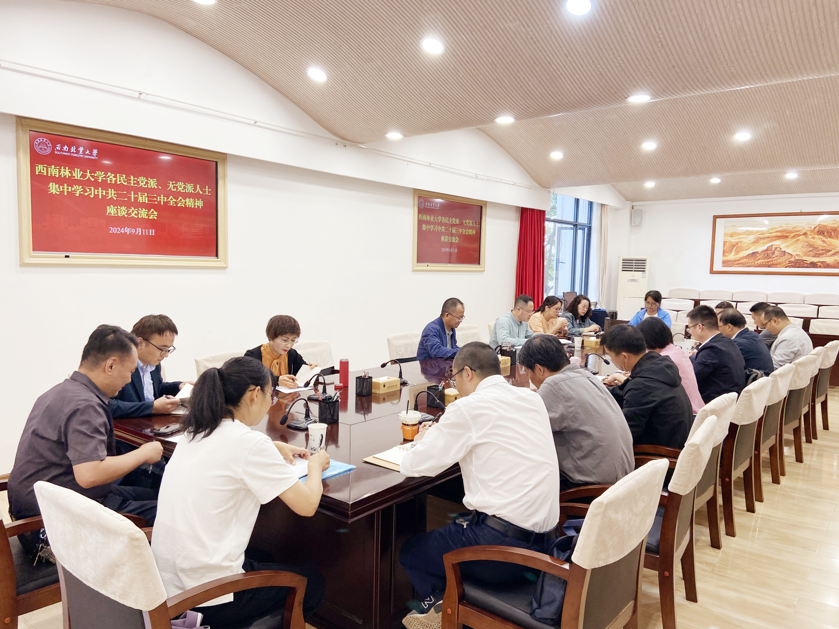 近日,学校召开各民主党派及无党派人士代表集中学习中共二十届三中全会精神座谈交流会。校党委副书记魏宏,各民主党派主委、副主委、委员,无党派人士代表,统战部全体人员参加会议。会议由统战部部长王泾主持。