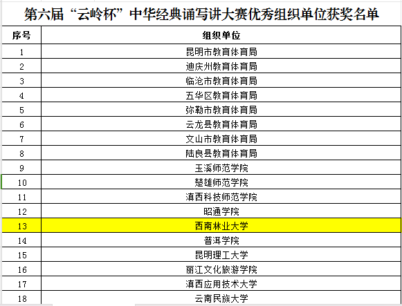 近日,云南省语言文字工作委员会、云南省教育厅公布了云南省第六届“云岭杯”中华经典诵写讲大赛比赛结果。学校有27项作品获奖,包括一等奖1项、二等奖10项、三等奖7项、优秀奖3项、“优秀指导教师”4名,其中,2项作品入围教育部“诵读中国”经典诵读大赛,kaiyun体育获评“优秀组织单位”。