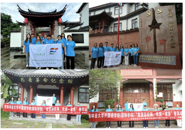 外国语学院(国际学院)暑期“三下乡”社会实践团在普洱市磨黑阿诗玛广场、磨黑红色基地、宁洱谦岗村、民族团结丰碑及梅子湖公园等地积极开展活动,围绕禁毒和民族团结两大主题进行广泛宣讲,并聚焦“民族产业助力民族团结”,探访帝泊洱生物茶谷产业。