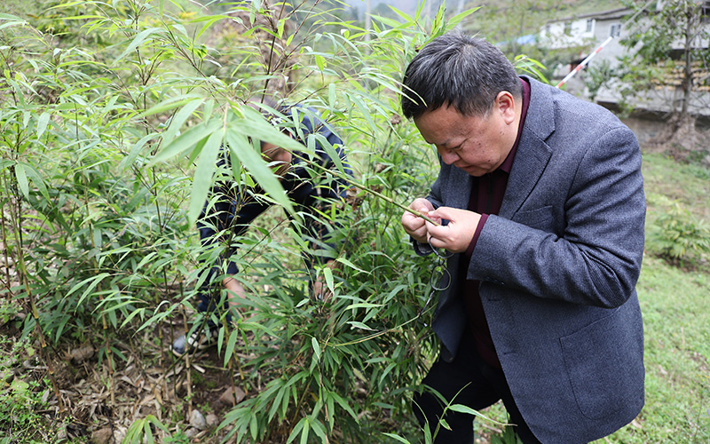 董文渊查看人工种植的筇竹长势