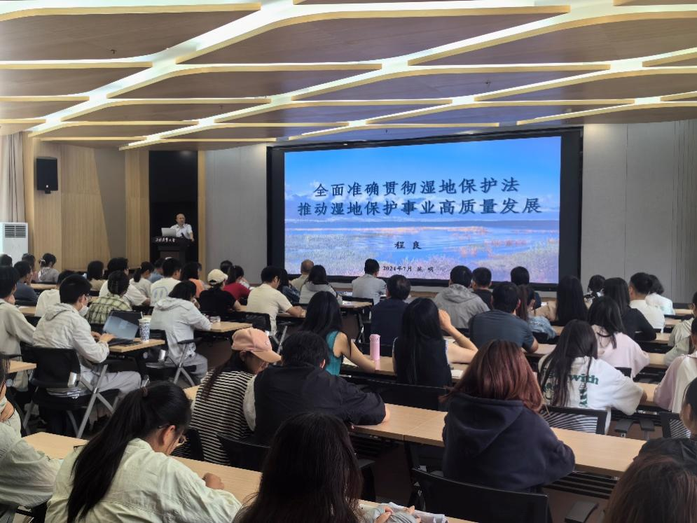 程良将自身丰富的工作经验与本次授课内容深度融合,围绕我国湿地保护基本情况、《湿地保护法》的意义与特点和全面贯彻实施《湿地保护法》三个方面,重点对湿地生态功能、我国湿地保护与修复成就、《湿地保护法》的立法进程和立法意义、加强湿地保护支撑体系建设等方面内容做了细致深入地讲解。