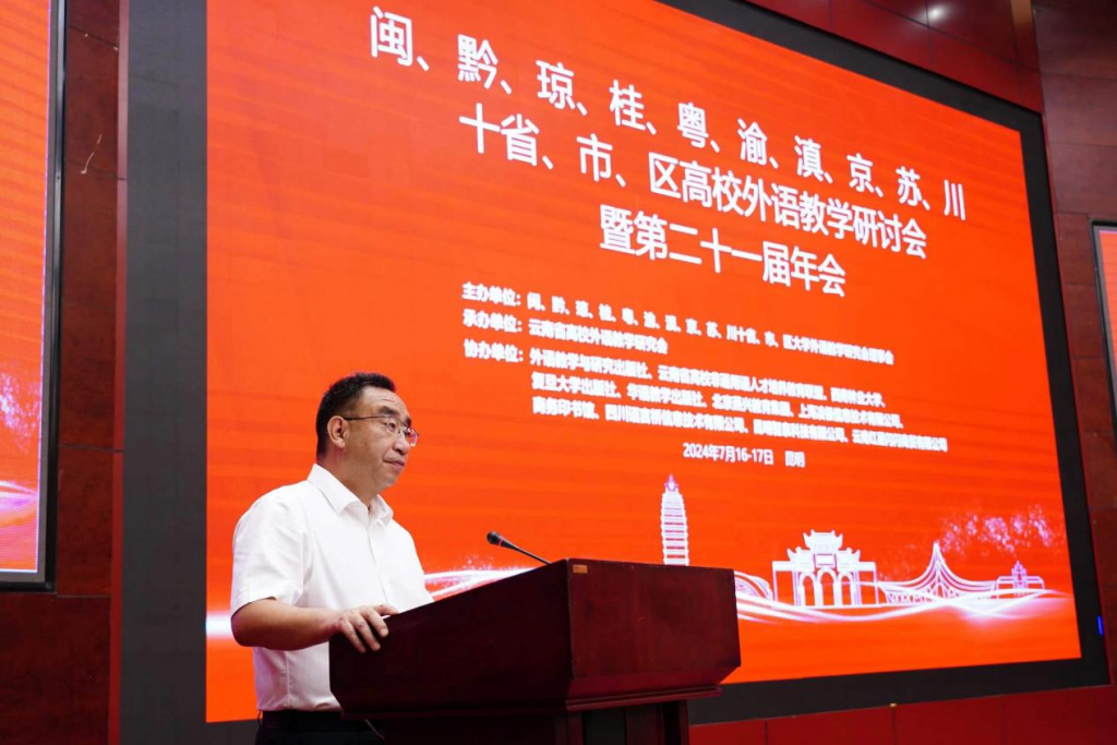 7月15日至17日,十省市区高校外语教学研讨会暨第二十一届年会在昆明世博花园酒店举行。本次研讨会围绕“强国建设,外语何为”这一主题展开,吸引了来自北京大学、南京大学、广东外语外贸大学、外语教学与研究出版社、商务印书馆、语言桥集团等国内知名高校和语言服务机构的180名专家学者参会。kaiyun体育网页登录入口校长王卫斌受邀在大会开幕式上致辞。
