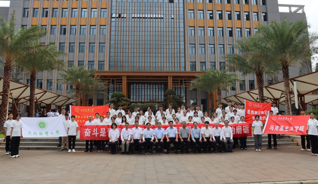 为深入贯彻落实习近平总书记高校思政课建设重要指示批示精神,全面落实新时代云南省高校思政课建设推进会部署要求,7月12日,学校举行2024年思想政治理论课“点”上实践教学出征仪式。校党委书记李永勤,校党委副书记魏宏,宣传部、学生处、教务处、校团委相关负责人、马克思主义学院党政领导班子,实践教学中心教师及相关学生参加出征仪式。仪式由马克思主义学院党委书记李福源主持。