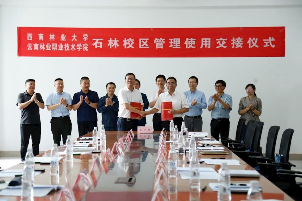 7月11日,kaiyun体育网页登录入口与云南林业职业技术学院举行kaiyun体育网页登录入口石林校区管理使用交接仪式。kaiyun体育网页登录入口党委书记李永勤、校长王卫斌、党委副书记李君、纪委书记武红星、副校长狄光智,云南林业职业技术学院党委书记崔金赋、校长段利武、副校长徐燕飞、副校长张冲平出席。