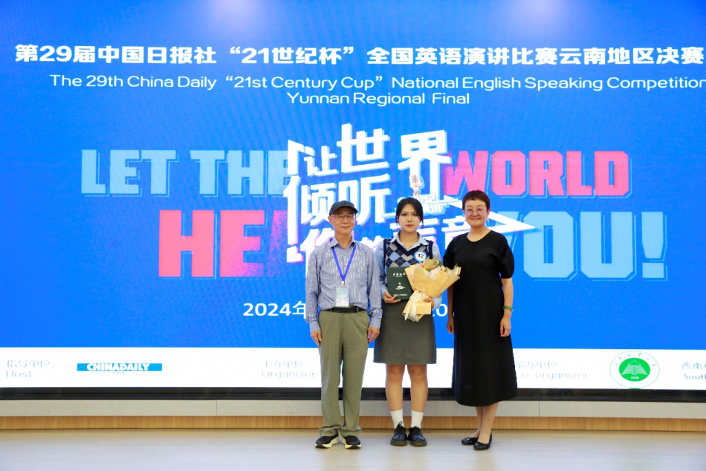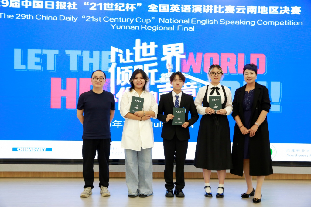 7月6日,第29届中国日报“21世纪杯”全国英语演讲大赛云南赛区决赛在kaiyun体育网页登录入口举行。此次大赛由中国日报云南省分社主办,kaiyun体育网页登录入口承办。来自云南省各高校的21名选手展开激烈角逐,kaiyun体育英语专业李燕同学荣获冠军、夏跃顺同学荣获一等奖、土木工程专业刘常屹同学荣获三等奖。李燕和夏跃顺两位同学晋级国赛。