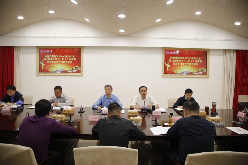 4月27日,校党委理论学习中心组举行2021年第三次集中学习扩大会议暨党史学习教育专题宣讲会,校党委理论学习中心组成员、基层党组织书记、党史学习教育专班成员参加学习。校长郭辉军主持会议。
