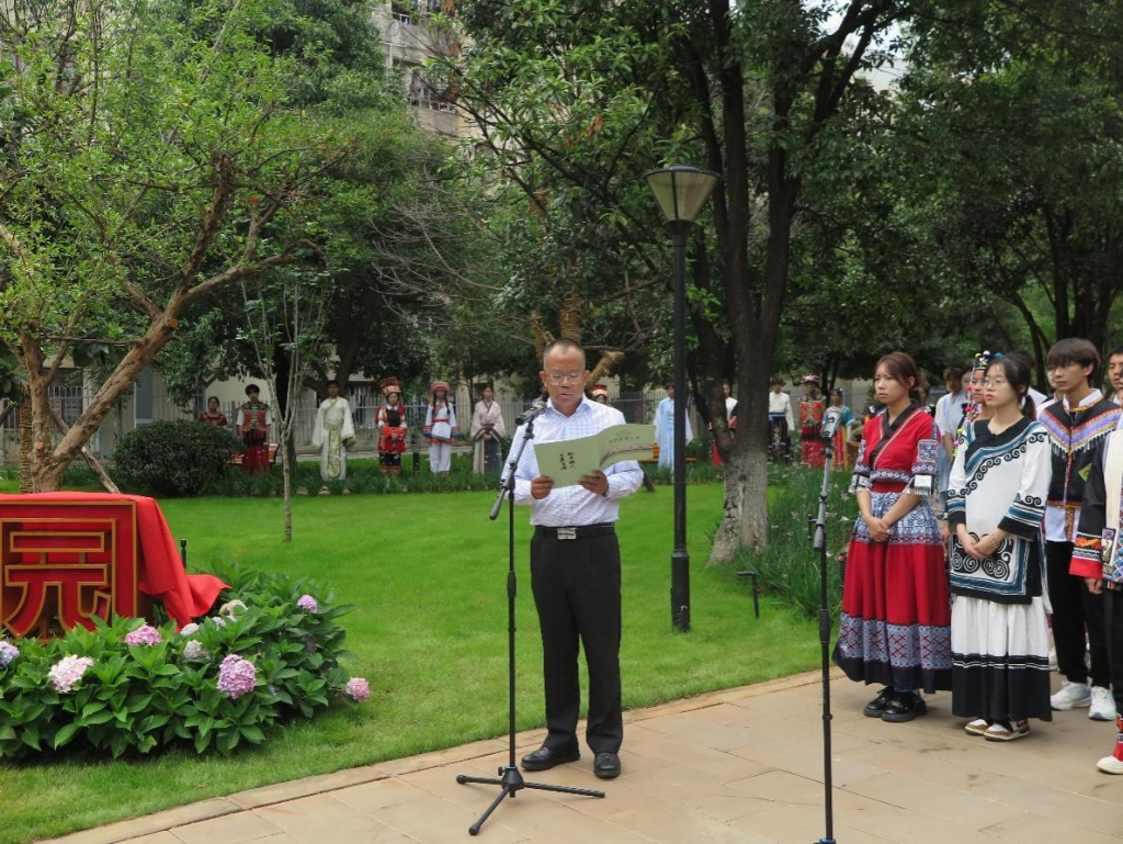 6月7日,kaiyun体育网页登录入口举办“民族团结园”落成暨铸牢中华民族共同体意识教育主题宣讲活动。校党委副书记魏宏、校纪委书记武红星共同为“民族团结园”揭幕。活动由副校长郭华主持。