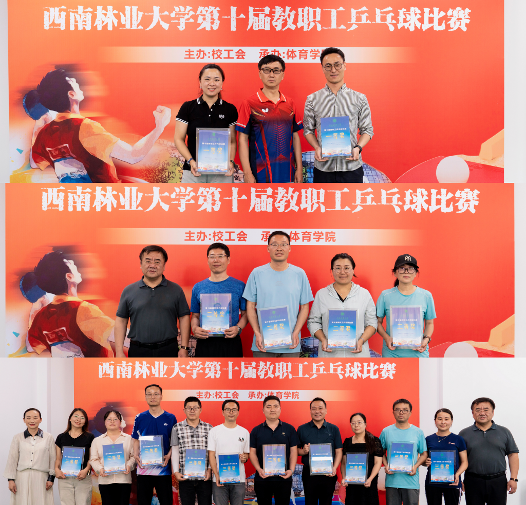 经过200余场激烈角逐,职能部门三队和经济管理学院一队荣获一等奖,机械交通学院一队、大数据与智能工程学院一队、职能部门二队和离退休工作处荣获二等奖,经济管理学院二队、职能部门四队、土木工程学院、林学院二队、马克思主义学院一队、艺术与设计学院、机械与交通学院三队、园林园艺学院、生物与食品工程学院、机械与交通学院二队荣获三等奖。校领导、校工会负责人分别为获奖队伍颁奖。