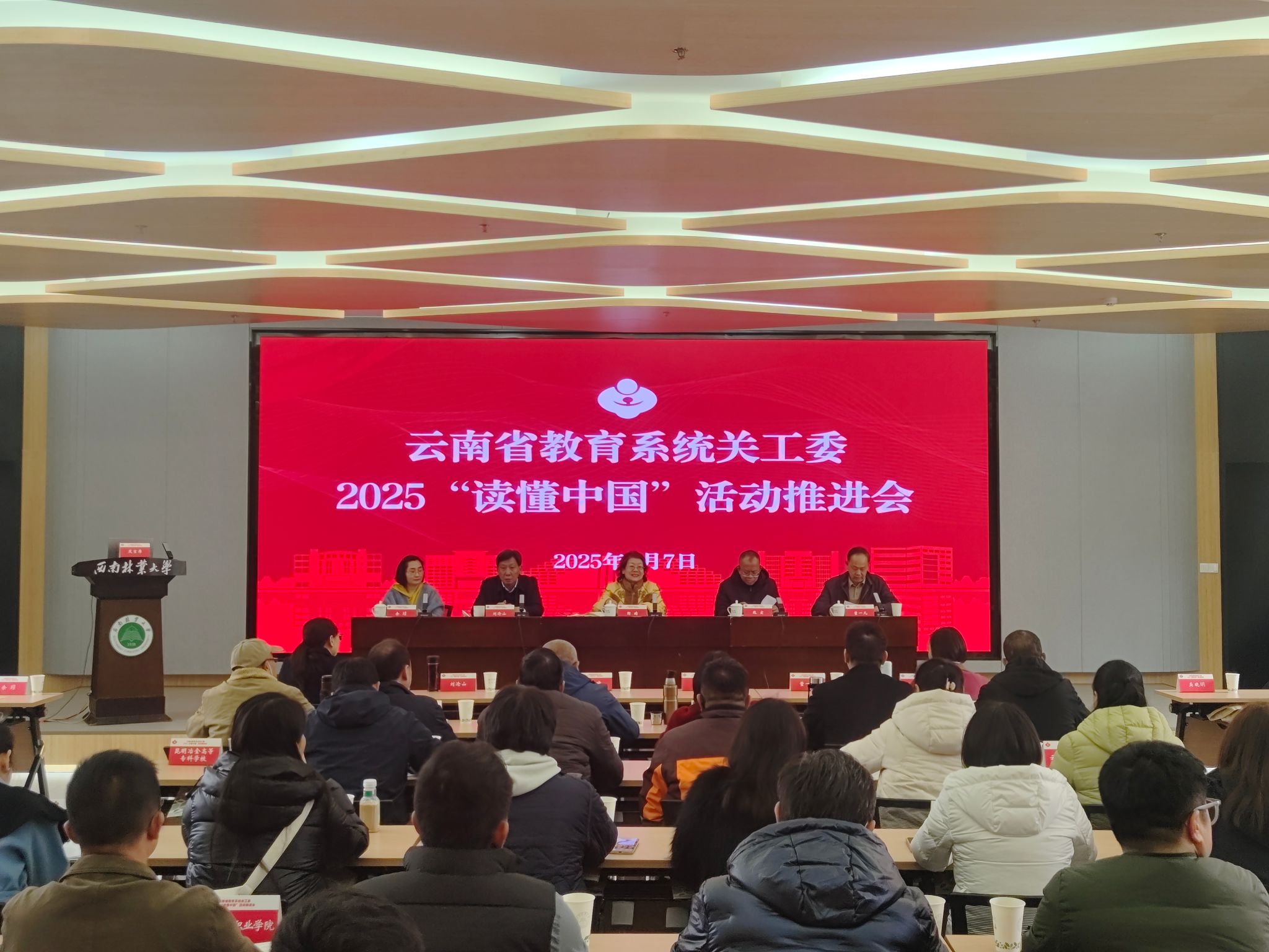 来自云南省54所本专科院校关工委负责人和学生代表共100余人参加会议。(来源:离退休工作处/文:赵璐/图:朱皓天/审核:朱新云/初审:张冉/复审:冷瑾/终审:张武先,柏顺文)