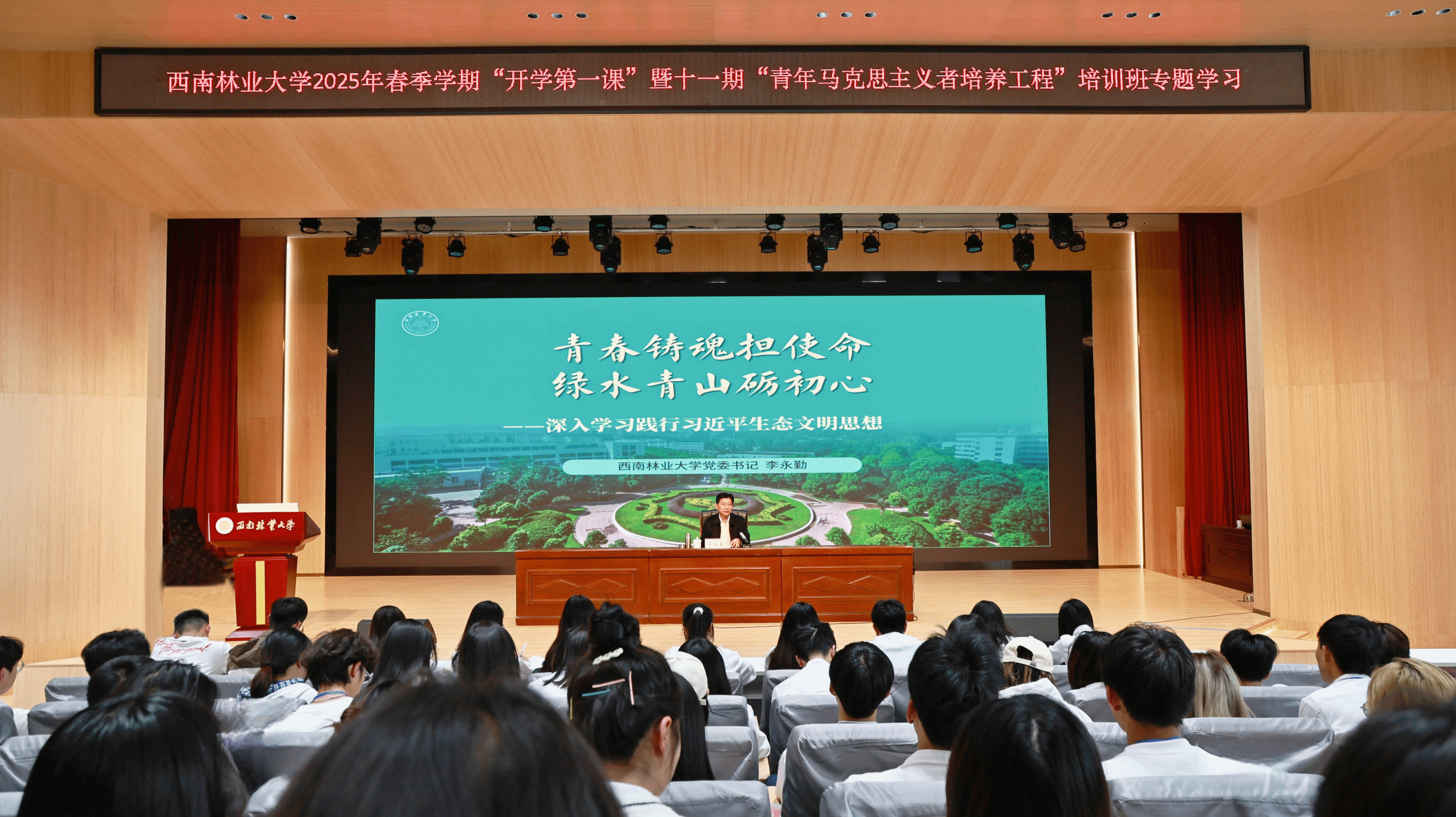 最后,李永勤向青年学子提出六点希望:提高政治站位,深刻领会习近平生态文明思想的核心要义;强化理论武装,系统把握生态文明建设的科学内涵;践行绿色发展理念,争当生态文明建设的行动先锋;厚植家国情怀,勇担守护西南生态屏障的时代责任;涵养全球视野,为构建地球生命共同体贡献力量;拥抱赋能科技,赋能生态文明建设的数字力量。
