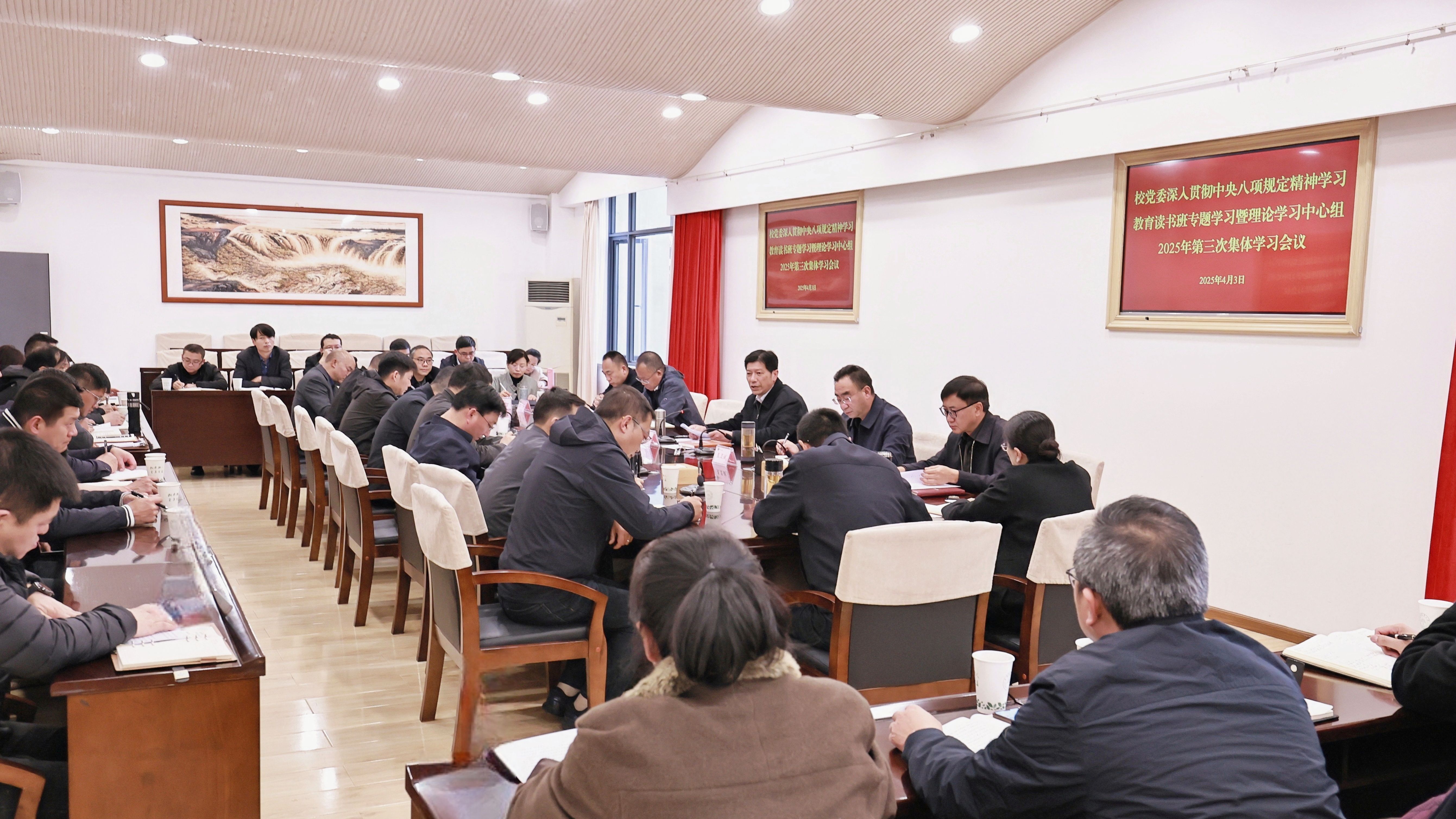4月3日,校党委开展深入贯彻中央八项规定精神学习教育读书班暨理论学习中心组第三次集体学习。读书班围绕《习近平关于加强党的作风建设论述摘编》,并结合教育领域、高校系统、学校自身实际,用两个半天时间,分两个阶段,集中学习和研讨习近平总书记关于加强党的作风建设的重要论述、中央八项规定及其实施细则精神,扎实开展深入贯彻中央八项规定精神学习教育。
