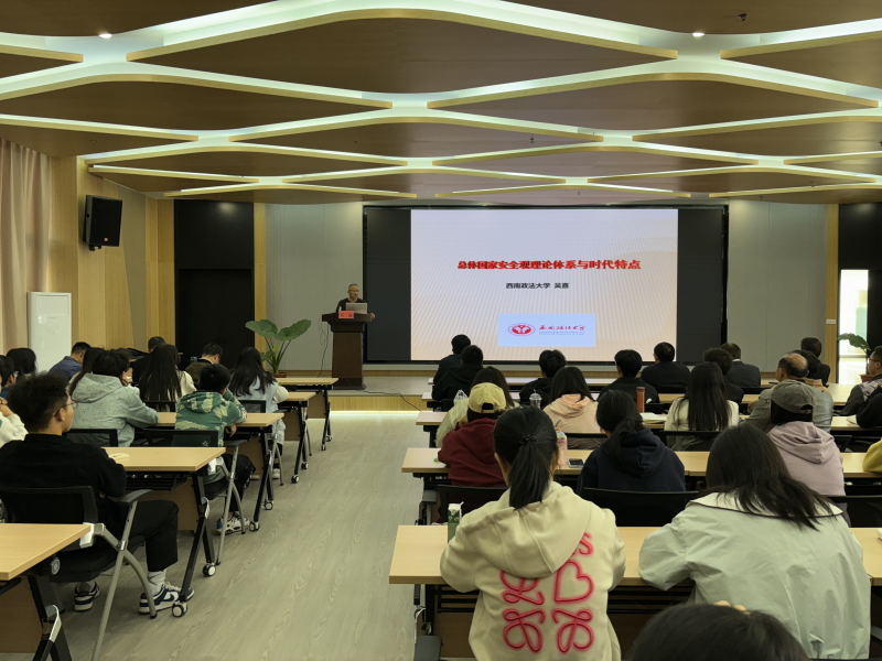 在《总体国家安全观理论体系与时代特点》主题报告中,吴喜围绕国际与国内、历史与现实多个维度深刻阐释总体国家安全观的理论渊源和重要意义,为参会师生作了一场高质量的国家安全教育。