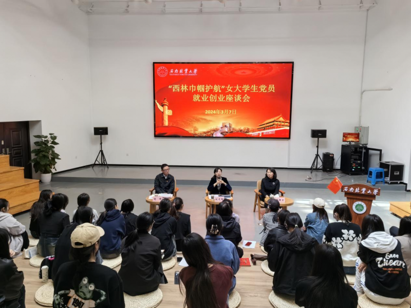座谈会在轻松活跃的氛围中进行。党员代表向程丹、刘仁芬、苏玉仙、谭祥凤积极发言,从未就业、考研升学、考公考编、自主创业四个角度分享了自己的个人选择、求职心得及目标规划。