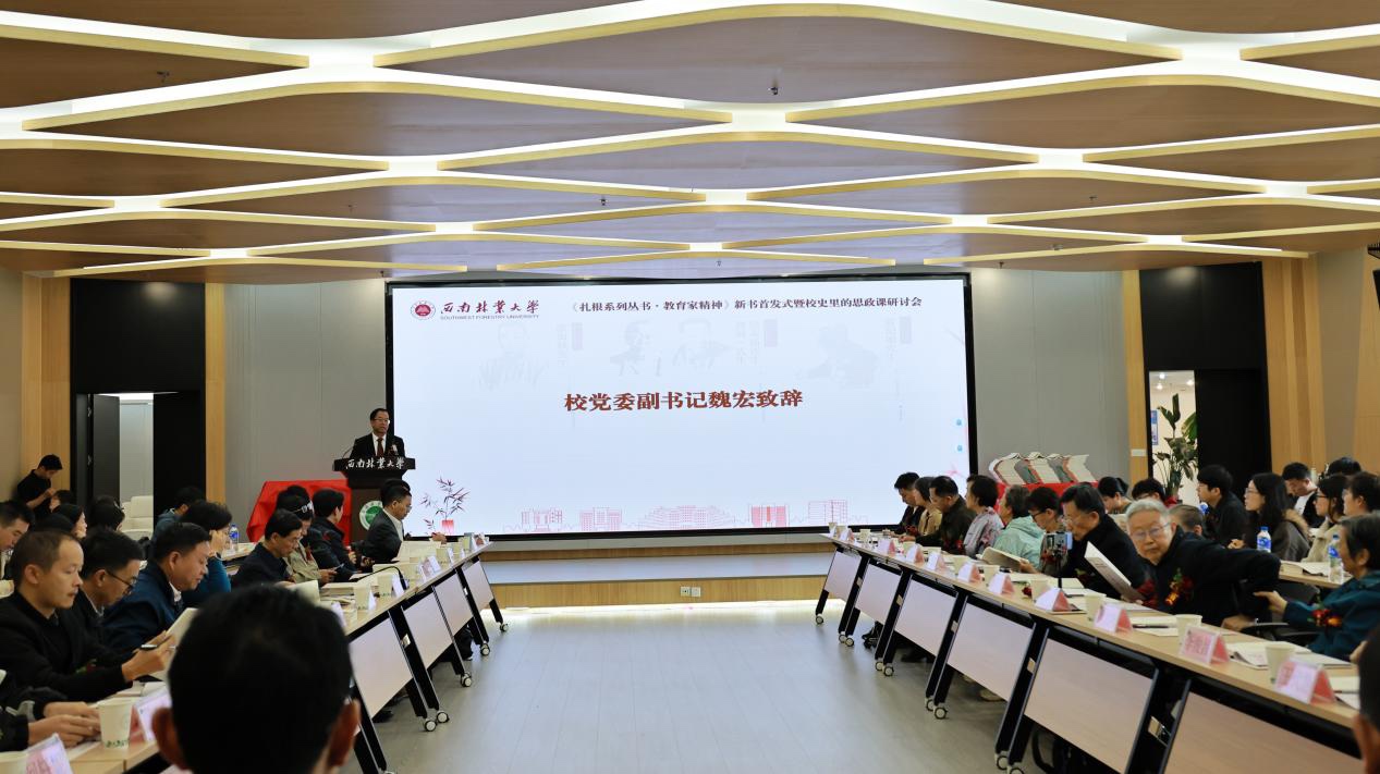 10月22日,学校举办《扎根系列丛书·教育家精神》(以下简称“《丛书》”)新书首发式暨校史里的思政课研讨会。张海秋先生、徐永椿先生、曹诚一先生、薛纪如先生家属代表和丛书编委、校友代表、师生代表受邀参会。校党委副书记魏宏参加会议并致辞。