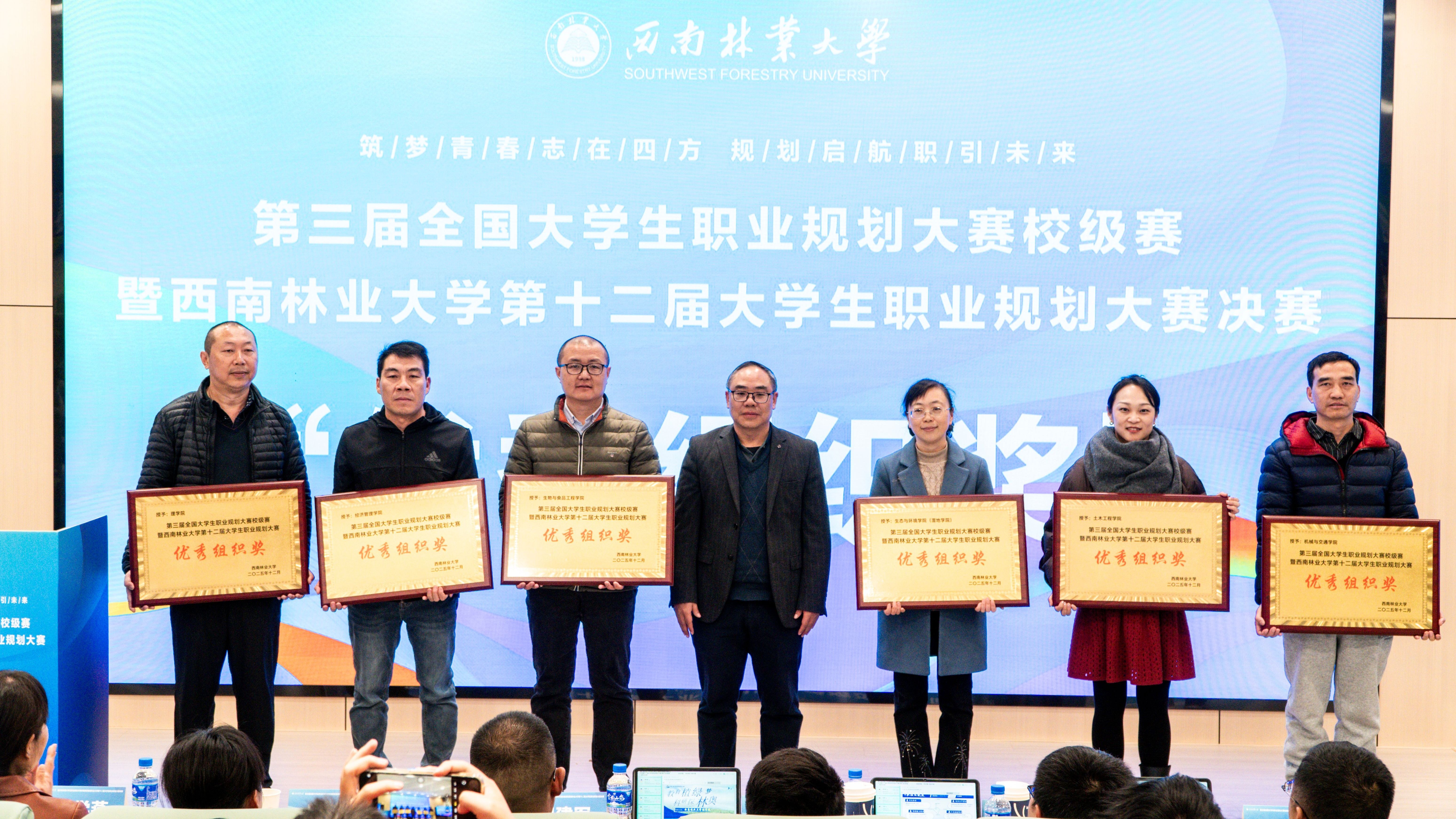 12月12日,第三届全国大学生职业规划大赛校级赛暨kaiyun体育网页登录入口第十二届大学生职业规划大赛校级决赛在学校成功举办。大赛由就业工作处、园林园艺学院、文法学院、生态与环境学院、林学院、艺术与设计学院联合承办,其他各学院协办,副校长杨思林出席决赛活动并为获奖师生颁奖。