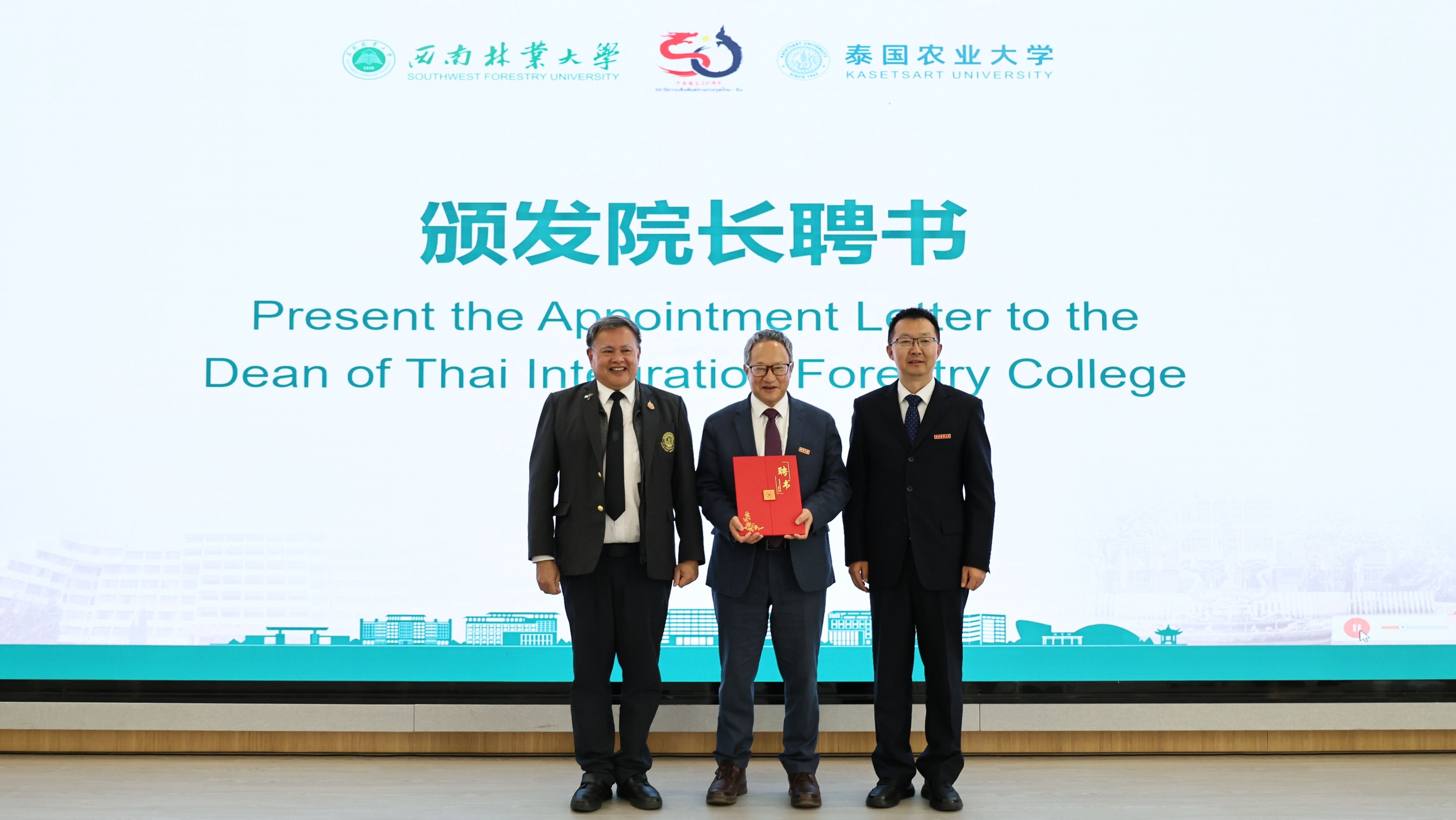 仪式现场气氛庄重而热烈。在众多嘉宾的见证下,kaiyun体育网页登录入口校长李君与泰国农业大学执行校长达姆隆·西帕拉共同完成揭牌,并向泰和林学院首任院长中国工程院院士杜官本教授颁发院长聘书。杜官本院士表示,科技无国界,教育促共生,他将不负信任与重托,努力带领学院发展成为中泰教育合作的示范样板。