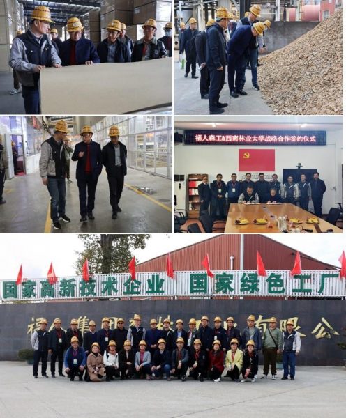会后,杜官本带队前往位于福建省邵武市的中国首条连续平压年产10万立方米的超薄竹刨花板生产企业—福人集团森林工业有限公司现场参观交流并与企业签署战略合作协议。双方表示未来将在重大科研项目申报、科技成果转化、竹产业服务和人才培养等方面开展持续深入的合作。