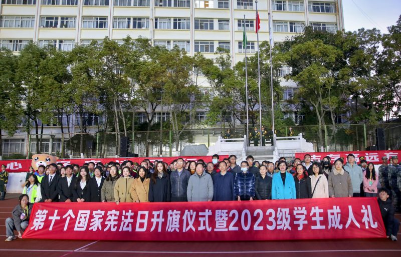 为贯彻落实习近平法治思想和习近平总书记关于宪法法治教育的重要指示精神,12月4日,学校举行第十个国家宪法日升旗仪式暨2023级学生成人礼活动。副校长彭志远出席活动并致辞,学生处全体工作人员、各学院分管学生工作领导、辅导员代表、班主任代表,全体2023级本科生参加活动。