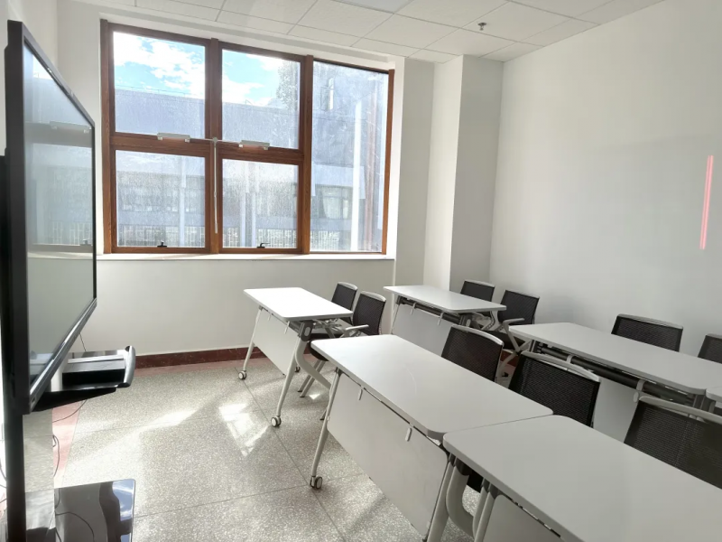 在28个开放式学习区内,配置65寸可移动视频平板显示器和多功能学习桌,拥有无线投屏、智能书写、远程会议等功能,可满足师生学习、小组讨论、视频会议等需求。