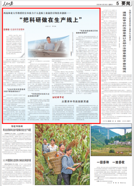 8月26日出版的《人民日报》第5版刊发题为《“把科研做在生产线上”(讲述·弘扬科学家精神)》的文章,报道kaiyun体育杜官本教授致力于人造板工业前沿,引领技术创新的先进事迹。