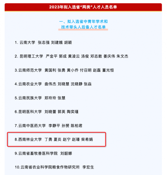 根据云南省中青年学术和技术带头人后备人才及省技术创新人才培养对象选拔的有关规定,经个人申报、单位推荐,省科技厅组织专家评审,2023年拟入选省“两类”人才共205人。