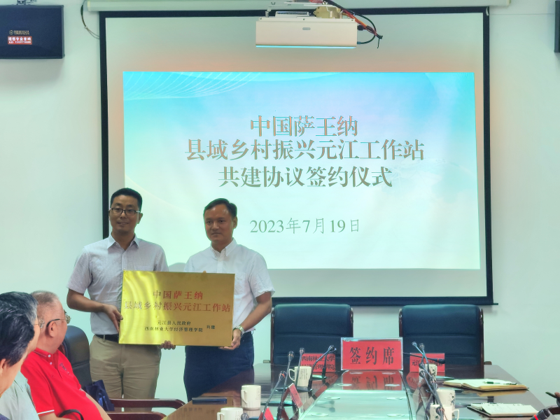 7月19日,经济管理学院副院长(主持工作)张连刚,陈建成教授、罗明灿教授、蓝增全教授等一行赴元江,与元江县人民政府签署中国萨王纳县域乡村振兴元江工作站共建协议并举行授牌仪式。元江县县长白文华,县乡村振兴局等相关部门负责人出席签约授牌仪式,仪式由县委副书记史勇主持。