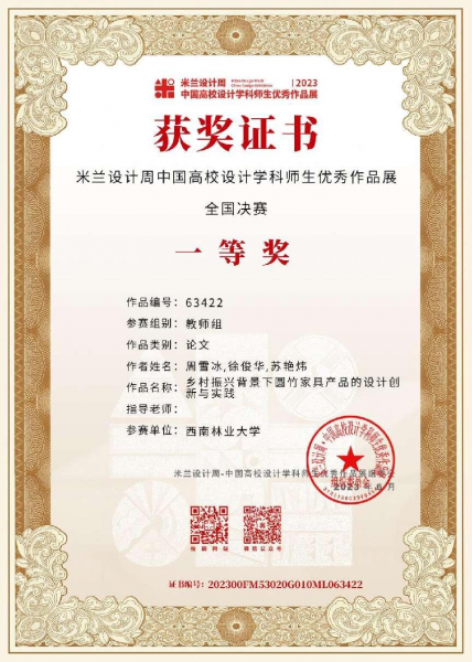 近日,第七届“米兰设计周——中国高校设计学科师生优秀作品展”国赛成果公布,kaiyun体育艺术与设计学院教师周雪冰团队报送的论文类作品《乡村振兴背景下圆竹家具产品的设计创新与实践》获国赛一等奖,设计类作品《一捆竹凳》获云南省分赛区三等奖。