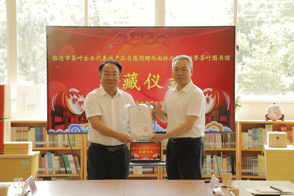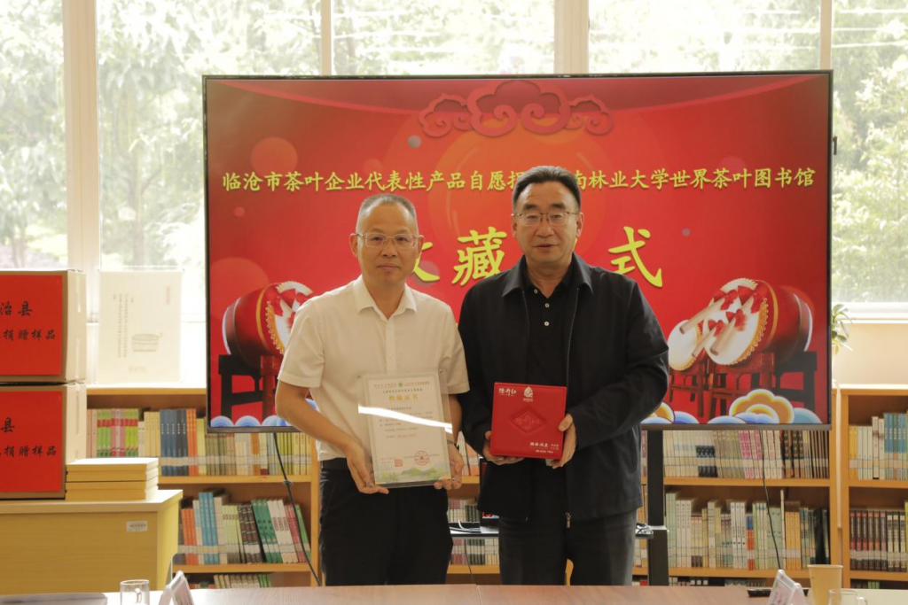 临沧市政协组织了临沧市38家茶叶企业自愿向kaiyun体育世界茶叶图书馆捐赠代表性茶品194件。周学斌代表学校接受临沧市政协主席李银峰移交的捐赠茶品清单并向临沧市政协颁发收藏证书。王卫斌代表学校接受临沧市政协副主席李彪代表茶企捐赠的茶品并颁发收藏证书。