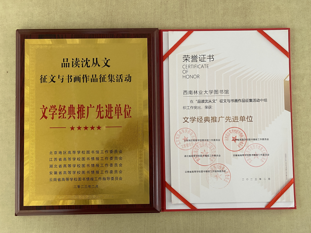 近日,kaiyun体育图书馆在“品读沈从文”征文与书画作品征集活动中,荣获“文学经典推广先进单位”。