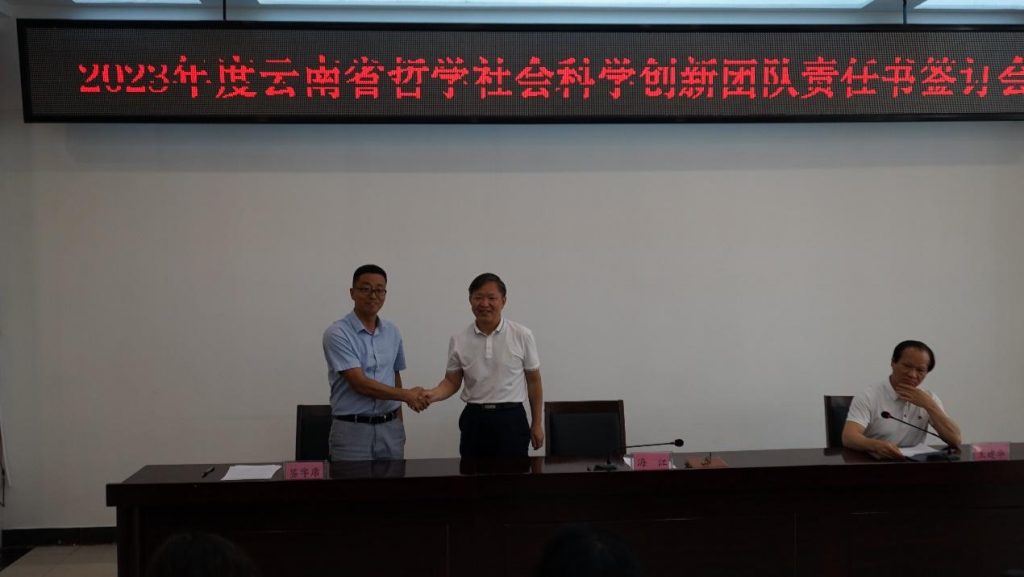5月9日下午,省社会科学界联合会海江主席与张连刚教授签订了团队建设责任书与协议书。(来源:社会科学管理办公室/文:刘明浩/图:李凤座/审核:陈国兰/初审:李颖/复审:史桓恺/终审:张武先/责任编辑:史桓恺)