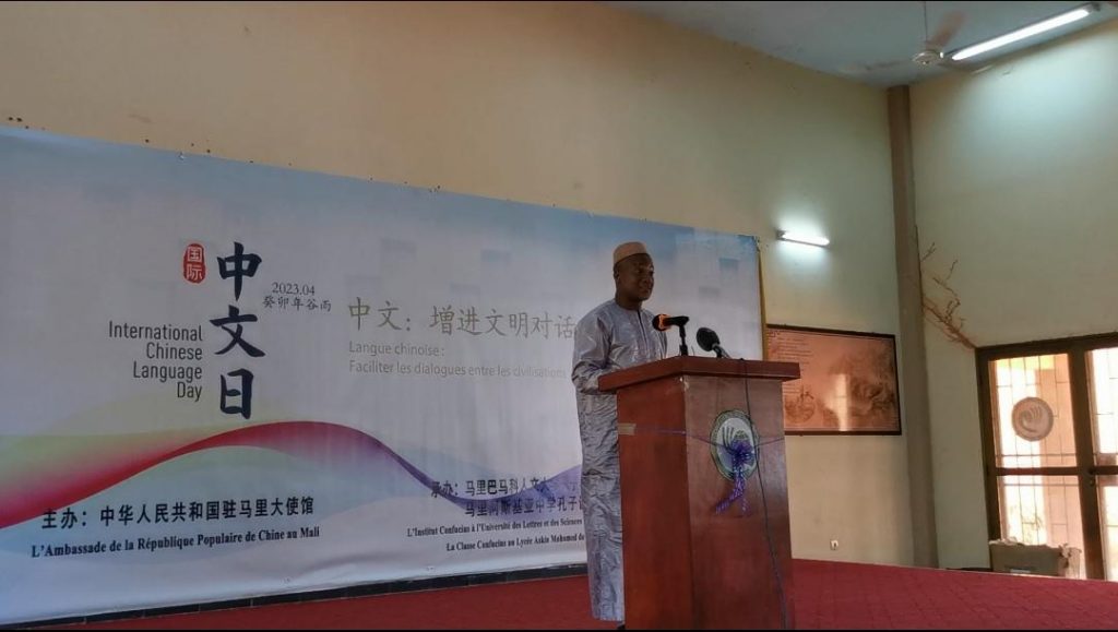 4月25日,学校马里孔子学院、孔子课堂联合中国驻马里大使馆共同举办国际中文日活动,中国驻马里大使馆刘开源临时代办,巴马科人文大学校长特拉奥雷教授等出席并致辞。