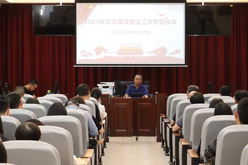 4月23日,校党委副书记魏宏到文法学院组织召开2023年党风廉政建设、意识形态、毕业生就业工作专题会,学院全体教职工参加。会议由学院党委书记杨恬主持。