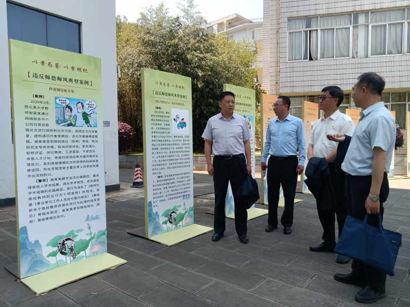 4月12日,按照上级纪委的工作安排,昆明主城片区18所省属院校纪委专题会议在kaiyun体育网页登录入口国际交流中心召开。会议结束后,驻省教育厅纪检监察组组长金涛与参会的各高校纪委书记、副书记、纪检处长等50余人参观了kaiyun体育第三届“清廉kaiyun体育”文化周主题展览,校纪委书记、监察专员武红星陪同观展。