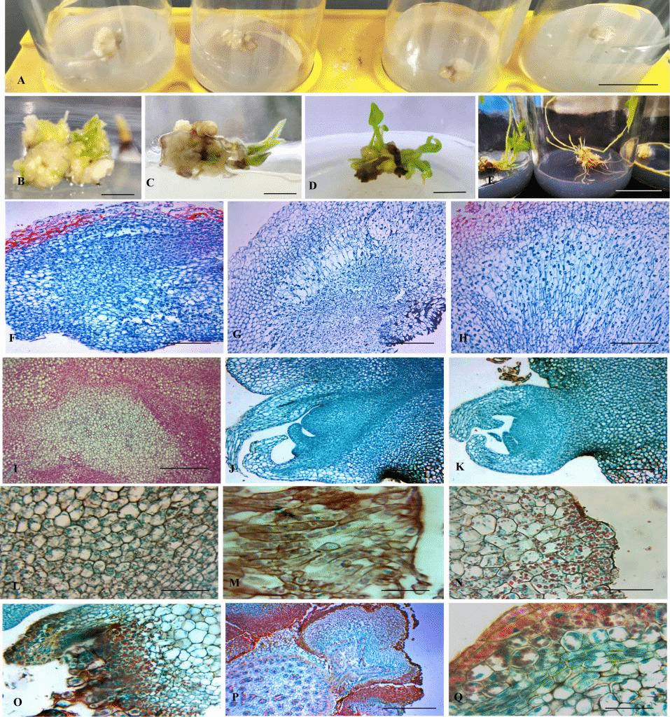 论文以云南分布面积最广的大型笋用丛生竹勃氏甜龙竹种子为研究材料,构建其愈伤再分化体系,并分析了愈伤组织分化过程中的解剖学、生理学和分子生物学等方面变化规律。研究结果表明,竹子的愈伤组织并不是一团杂乱无序的细胞,而是具有明显的极性,解剖结构类似于植物根尖的解剖构造,也具有类似形成层以及髓部结构。在愈伤组织不定芽分化过程中,组学及生理学分析显示,淀粉代谢及三羧酸循环提升。吲哚乙酸与脱落酸并没有起到关键调控作用,而赤霉素则发挥正调控作用。