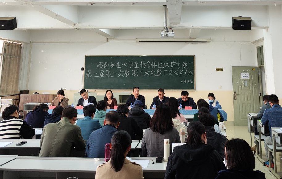 为认真落实校工会关于召开二级工会教代会相关通知要求,3月28日,生物多样性保护学院召开第二届第三次教职工大会暨工会会员代表大会,副校长杨斌、校工会副主席李林谦、学院党政领导班子、全院教职工参加会议,会议由学院工会主席古旭主持。