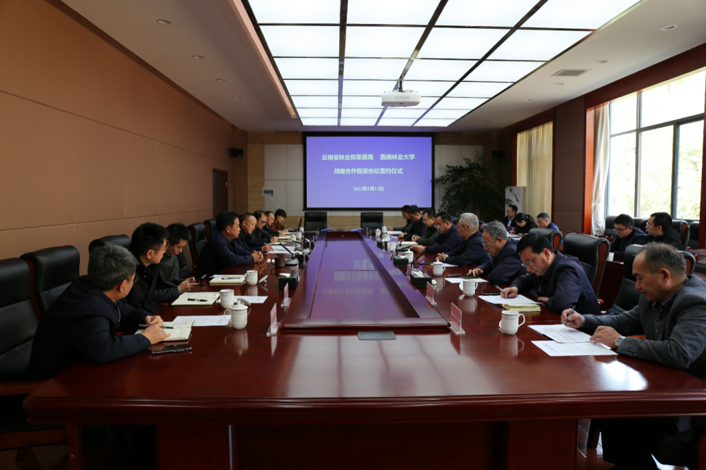 3月13日,校党委书记周学斌,校长王卫斌,副校长杜官本、李君率领办公室(党委巡察办)、发展规划处、科技处、对外合作交流处负责人赴云南省林业和草原局,参加双方战略合作签约仪式。云南省林业和草原局局长万勇参加会议并讲话,副局长丁鲲主持签约仪式。
