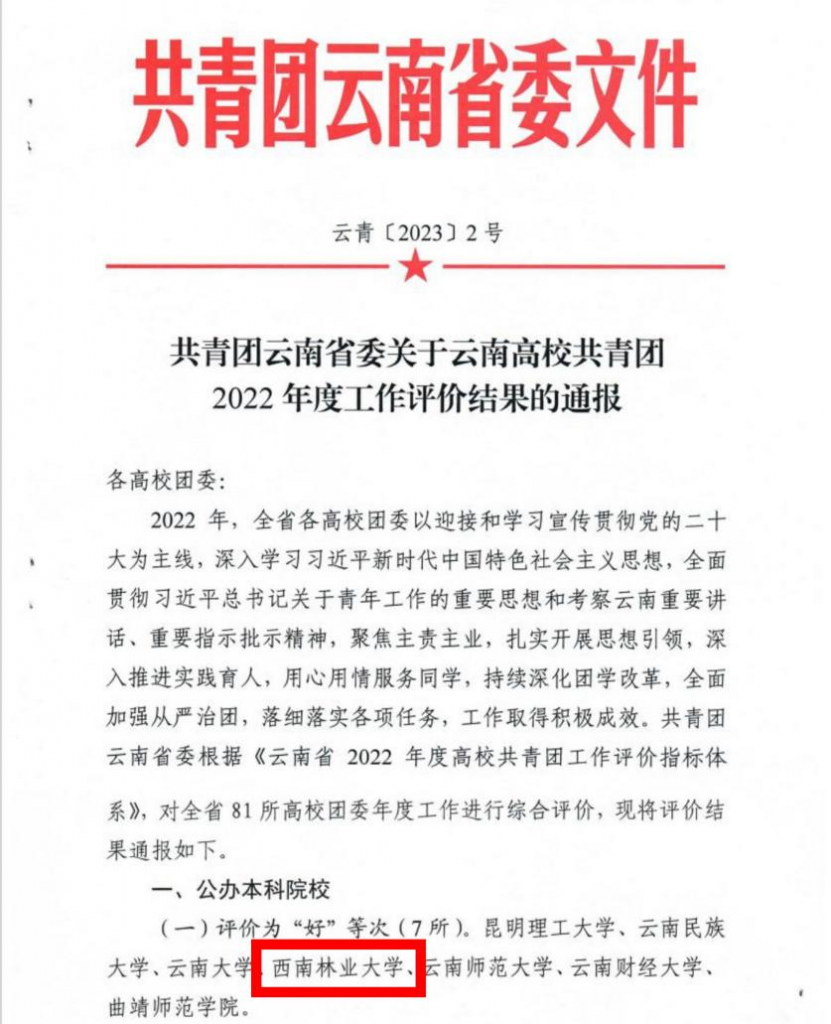 近日,共青团云南省委印发《关于云南高校共青团2022年度工作评价结果的通报》,kaiyun体育共青团工作在全省81所高校中获评“好”等次。