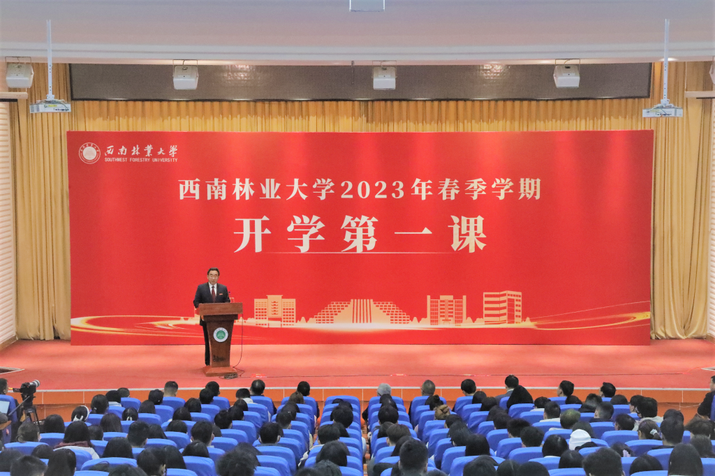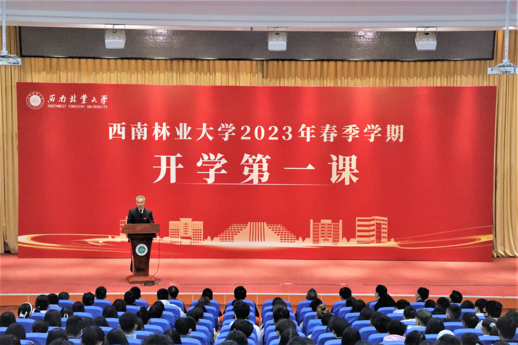 王卫斌在“开学第一课”上,通过讲述亚洲象“北上南归”、滇金丝猴全境保护项目入选COP15“中国生态修复十大典型案例”的生动案例,向同学们展现了我国我省和学校践行习近平生态文明思想,在促进人与自然和谐共生方面取得的巨大成就,展现了学校发挥学科专业优势,积极服务国家战略的责任担当。他希望同学们勤奋学习,刻苦钻研,面向未来打牢知识基础,提升专业本领,努力成为生态文明建设的参与者、实践者、推动者,在中国式现代化建设进程中担当光荣使命,为云南争当全国生态文明建设排头兵、建设绿美云南作出贡献。他希望同学们在新学期的学习生活中,践行德智体美劳全面发展要求,提升能力与素质,在品行修为上、学业上不断取得新进步。