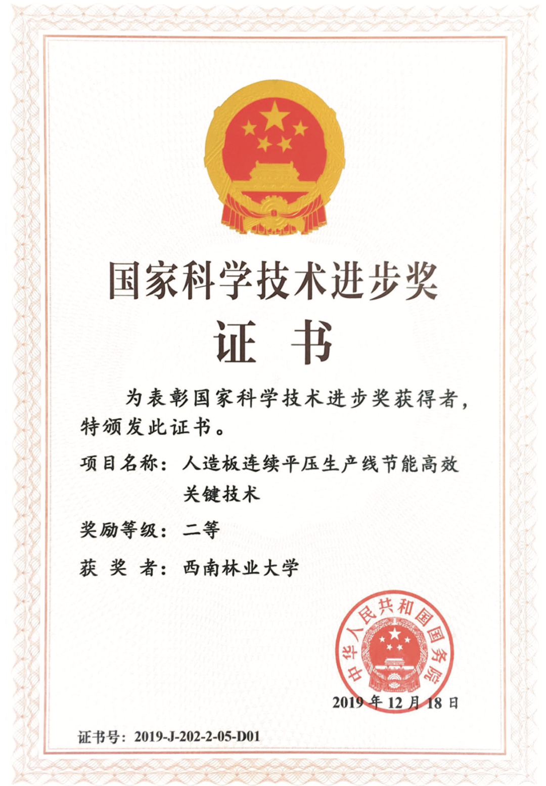 新增自然科学类省部级以上科技奖励24项。学校以第一完成单位主持的“人造板连续平压生产线节能高效关键技术”项目再获国家科技进步二等奖,“甲醛系列树脂人造板胶粘合剂合成与应用”项目首获教育部高校科研优秀成果科技进步一等奖,并首获何梁何利基金科技创新奖1项,获云南省科技进步一等奖1项、梁希林业科技进步一等奖1项。参加完成的“竹资源高效培育关键技术”项目获国家科技进步二等奖。以第一单位发表国际高影响力论文1083篇,中文期刊论文4060篇,实现增长30%以上;出版学术著作348部,实现增长6%以上;获得知识产权1837件,其中授权发明专利149件、制订标准5项、获批新品种和良种4件,实现增长3倍以上。