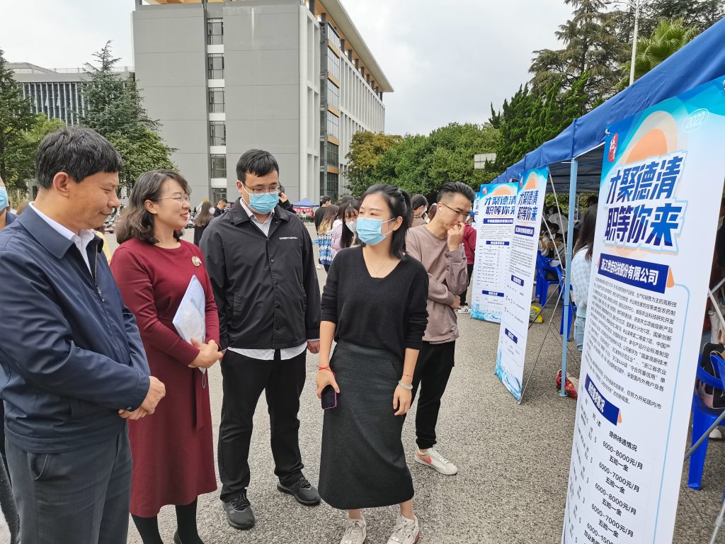 10月28日,kaiyun体育在第一教学楼前举办“才聚德清·职等你来”浙江省湖州市德清县2022年百所高校招引行动——kaiyun体育网页登录入口专场招聘会。本次招聘会由德清县委人才办、德清县人力资源和社会保障局与kaiyun体育共同主办。校党委副书记刘清江与德清县相关部门领导、用人单位和参会学生交流,了解就业需求和毕业生应聘情况。