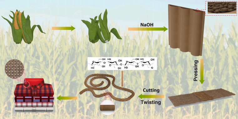 我国玉米产量列世界第二位,2021年全年产量为27255万吨,同时产生约1800万吨玉米苞叶或玉米皮。大多数玉米苞叶没有被利用起来,一般用来焚烧、掩埋。玉米苞叶所含的纤维素组织构造紧密、韧性强,云南省木材胶粘剂及胶合制品重点实验室郑荣波副教授和杜官本教授等,通过简单的除木质素-机械压制策略,研制出可规模化、可降解、低碳排放、价廉、透明生物质塑料和纺织纤维,研究论文先后发表在《ACS Sustainable Chemistry & Engineering》《Industrial Crops and Products》等一区TOP期刊,研究成果为玉米苞叶高效利用提供了技术路线,也为替代难降解传统塑料提供了新的方案。