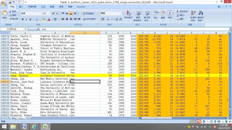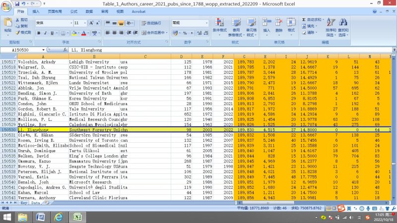 “全球顶尖科学家排名”自2018年发布以来,每年发布一次,2022年是这个排名的第四次发布。本次榜单统计数据时间节点为1960-2022年,涵盖全球200409位科学家,基于Scopus数据库,统计的文章涵盖SSCI期刊、SCI期刊、EI期刊、EI会议,再以论文被引次数、h指数、hm指数等进行综合评估。(来源:材料与化学工程学院/文/图:姜倩/审核:赵平/复审:张武先/责任编辑:朱皓天)