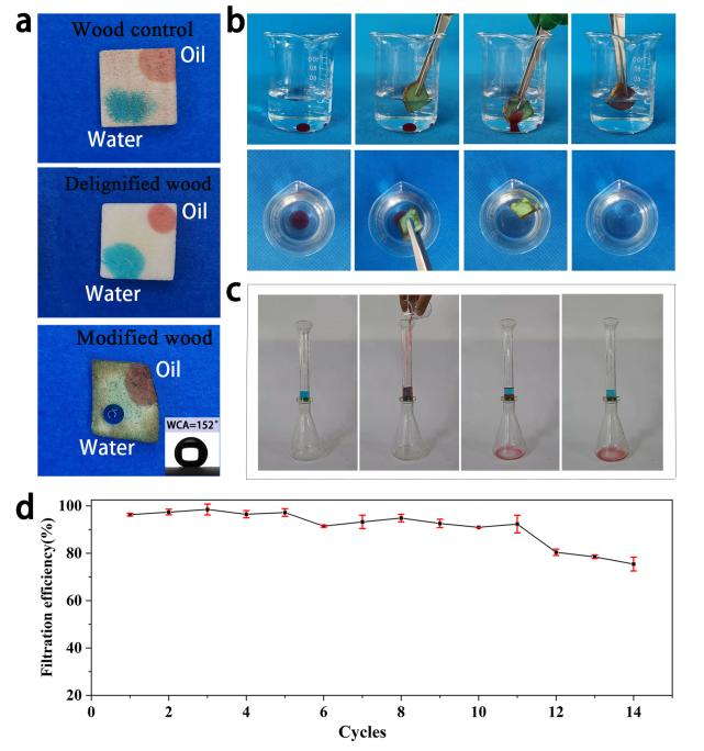 近日kaiyun体育网页登录入口材料与化学工程学院高伟教授团队《Colloids and Surfaces A-Physicochemical and Engineering Aspects》(中科院分区升级版2区,IF=5.518)期刊在线发表了题为《In-situ growth strategy to fabricate superhydrophobic wood by Na3(Cu2(CO3)3OH)∙4H2O for oil/water separation》的研究论文。该工作以原位生长Na3(Cu2(CO3)3OH)∙4H2O策略制备超疏水木材用于油水分离,实验表明改性后轻木表面润湿性发生了改变,水接触角为152°,油接触角为0°,改性轻木对水中轻重油均有良好的选择性吸附效果,且对重油和水的混合物可进行过滤分离,改性木材可循环使用14次,11次循环过滤的分离效率均在90%以上。该研究表明,在轻木表面原位合成超疏水表面是一种创造高效净水材料的简单方法。