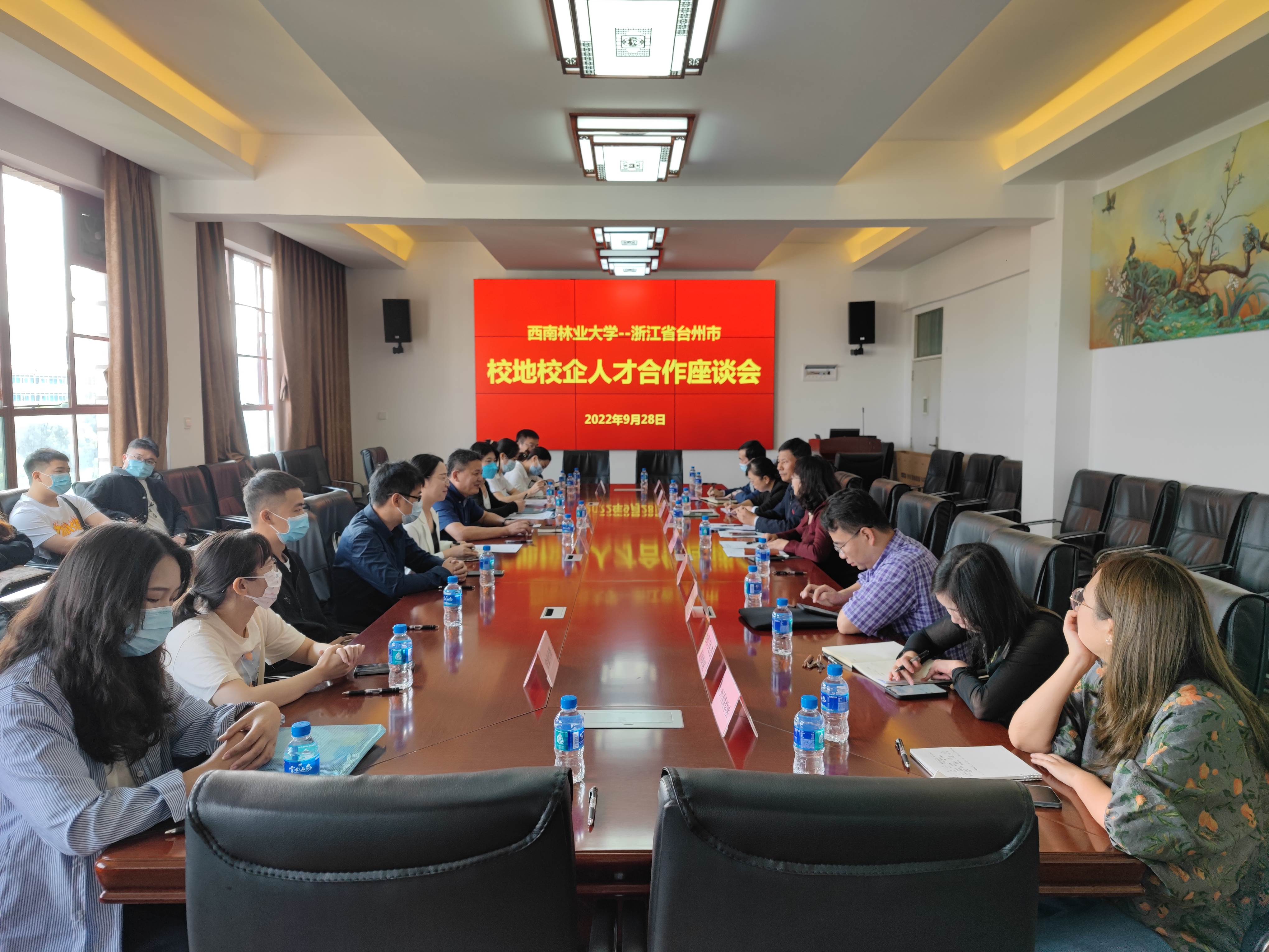 招聘会前,学校与参会的台州市三门县人力资源和社会保障局领导、企业代表在第一教学楼545会议室开展了座谈交流。座谈会由就业工作处处长张保兰主持,校党委副书记刘清江对台州市各位领导及企业代表的到来表示热烈欢迎,介绍了kaiyun体育的基本情况、校企合作及毕业生就业情况,三门县人力资源和社会保障局副局长张真关介绍了台州市市情、三门县县情及人才引进政策,学校相关学院分管领导与台州市领导及企业代表就如何开展政校企合作进行了充分的交流。