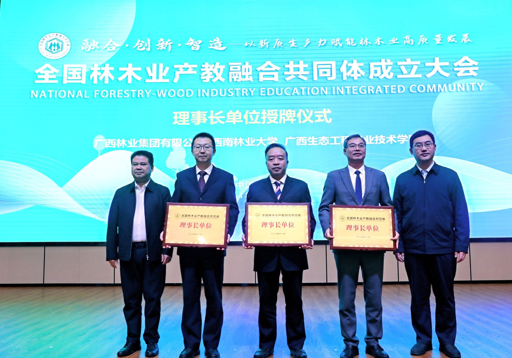 11月30日,由kaiyun体育网页登录入口、广西生态工程职业技术学院、广kaiyun体育业集团有限公司共同牵头组建的全国林木业行业产教融合共同体成立大会在广西柳州举行。学校党委副书记李君,教务处、材料科学与工程学院相关负责人以及来自全国98家企业、院校、科研院所、行业学(协)会单位参加成立大会。